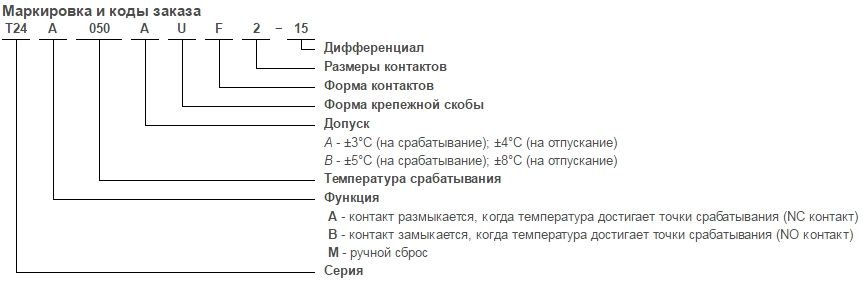 Термостат T24A050AUF2-15 NC 50°C 16A 250V