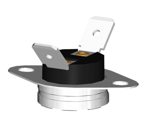Термостат биметаллический KSD301A B315 предназначен для замыкания силовой электрической цепи при достижении температуры в 70°С. Возврат в исходное состояние происходит при температуре 60°C. Крепление с помощью неподвижной скобы.