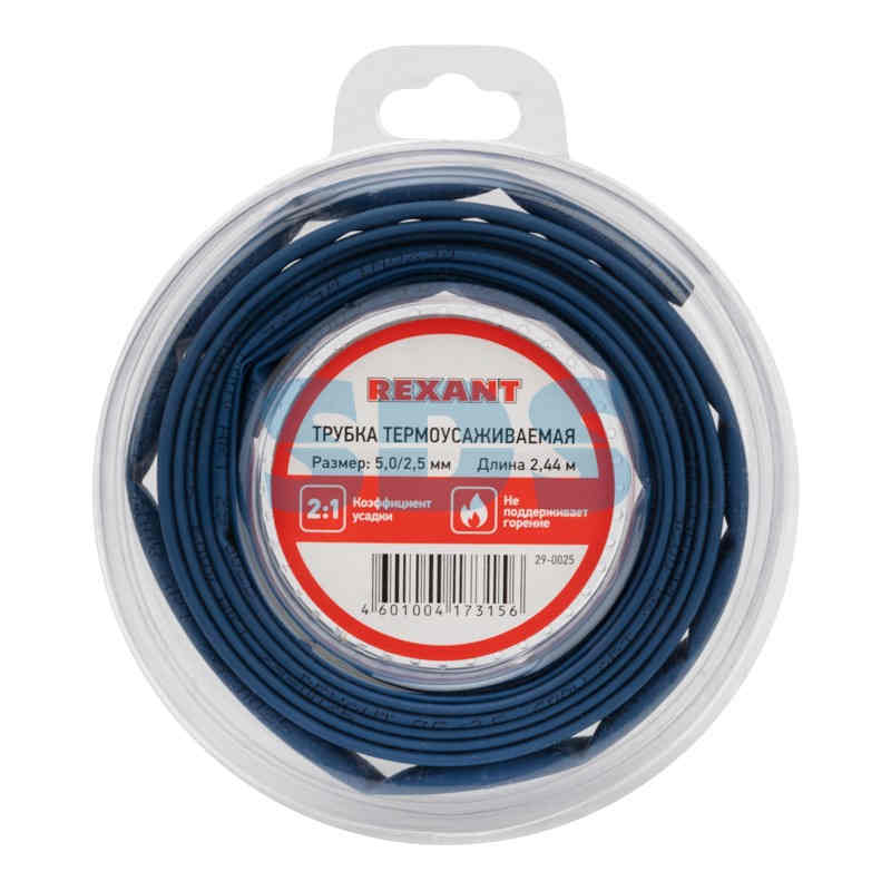 Трубка термоусаживаемая 5,0/2,5 мм синяя, ролик 2,44 м REXANT