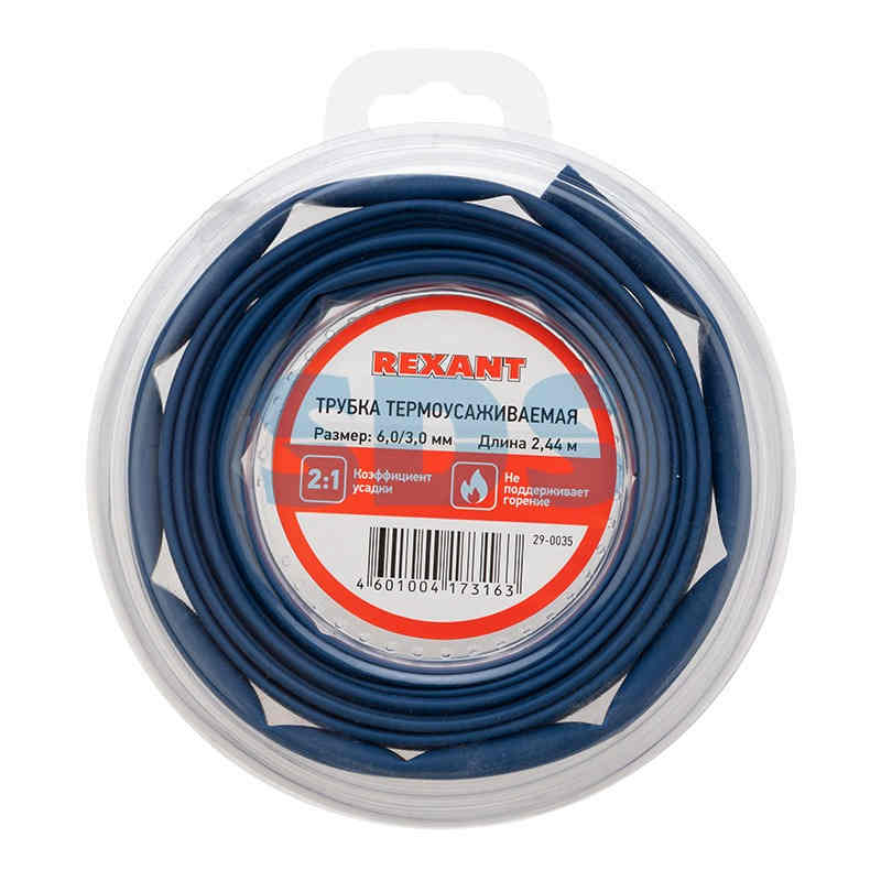 Трубка термоусаживаемая 6,0/3,0 мм синяя, ролик 2,44 м REXANT