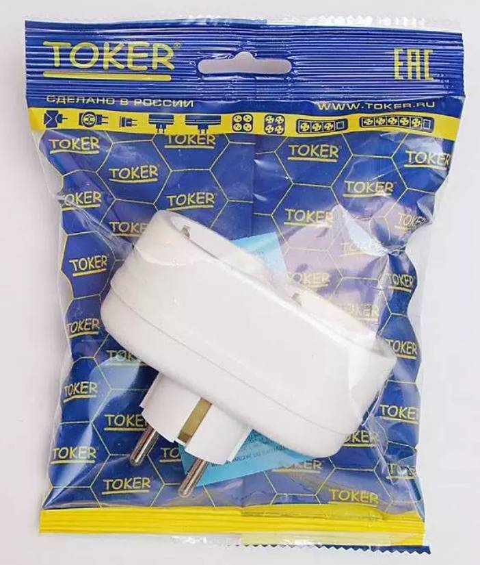 Разветвитель (тройник) 2 роз. 16А белый, земля (линейный) ИУ TOKER 2T2