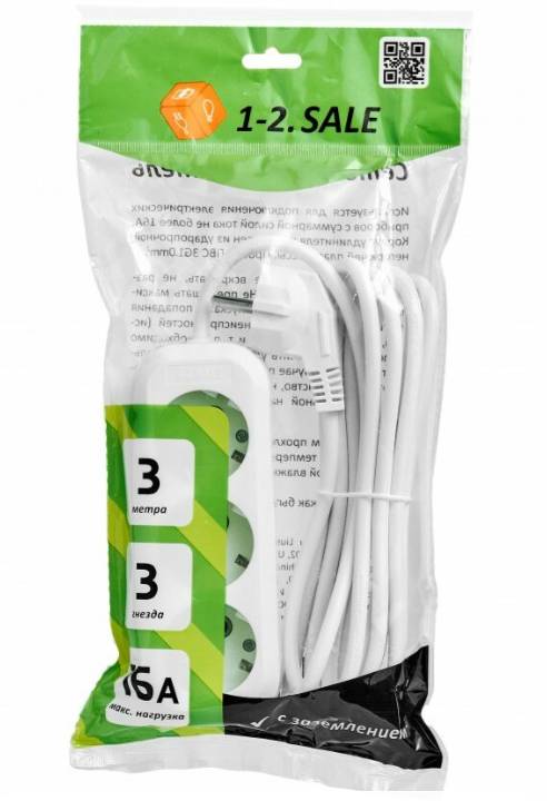 Сетевой удлинитель ПВС 3х1 3роз. 3м 16А земля (корпус АБС-пластик) 1-2.SALE