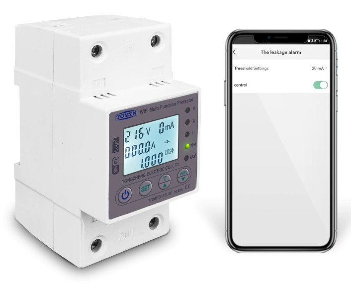 Реле контроля напряжения и тока с функцией УЗО, WiFi, TOMZN TOMPD-63LW