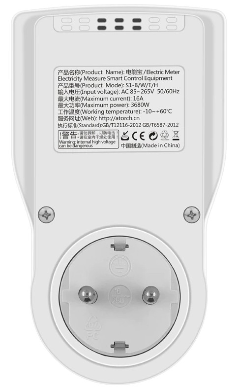 Розетка-мультитестер с функцией контроля напряжения и тока с управлением по WiFi, S1W