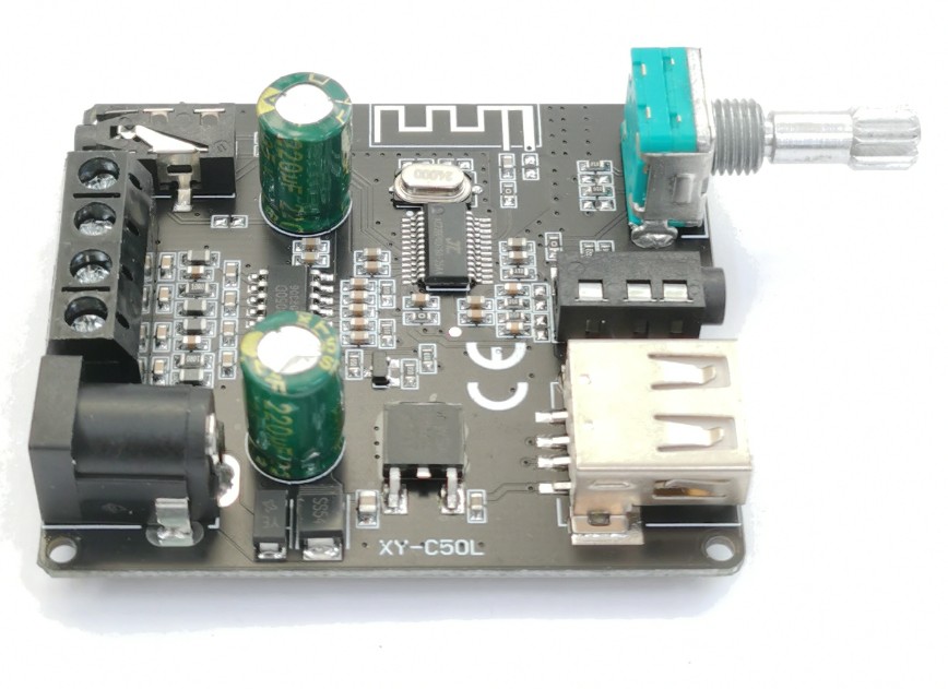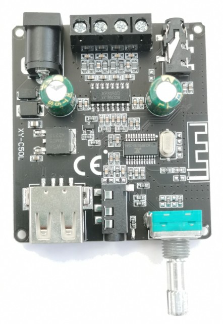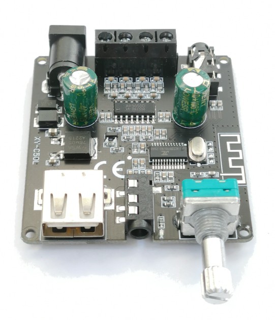 Качественный и мощный аудиоусилитель Sinilink XY-C50L на основе микросхемы AP3050D. Оснащен потенциометром с выключателем для регулировки громкости и отключения усилителя.