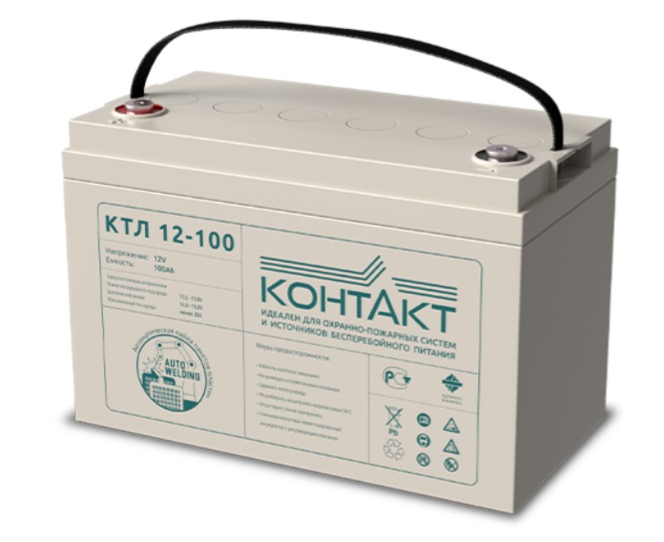 Контакт КТЛ 12-100. Свинцово-кислотный необслуживаемый аккумулятор, выполненный по технологии AGM. Предназначен для работы в режиме непрерывного подзаряда, способен поддерживать циклический. Безопасен при эксплуатации и транспортировке. Оптимальное решение для систем охранно-пожарной сигнализации и ИБП.