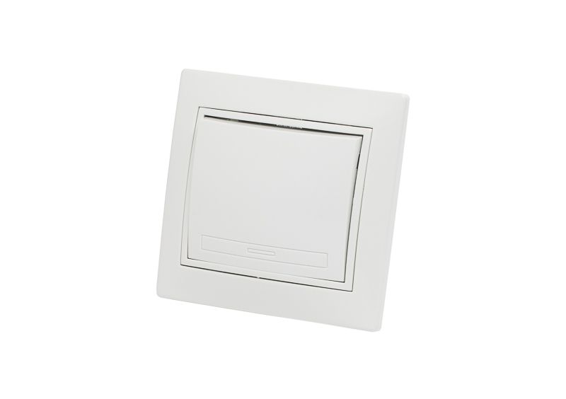 Выключатель одноклавишный скрытой проводки, цвет – белый. Тип зажимов винтовой; Степень защиты IP-20; Напряжение в сети 220/250 В; Частота тока 50 Г; Номинальный ток 10 А; Материал корпуса АБС-пластик; Материал деталей контактных групп латунь; Сечение присоединяемых к контактам проводов от 0,1 до 2,5 мм2;