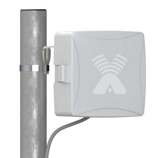 Тип антенны – синфазная полосковая решетка. Активные излучателя антенны укрыты в пластиковый корпус. Антенна снабжена отрезком удлинительного кабеля длиной 20 сантиметров с разъемом типа N-female и креплением на стену с поворотным шарниром. Возможно крепление на мачту.