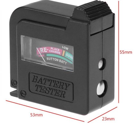 Тестер для проверки состояния элементов питания разных типов (пальчиковых батареек и аккумуляторов тип АА и ААА, «Крон» и «таблеток»).