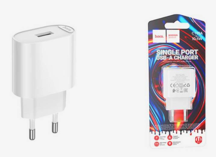 Сетевое зарядное устройство USB HOCO C109A 2.1A (10.5W) Fighter (EU) (белый)