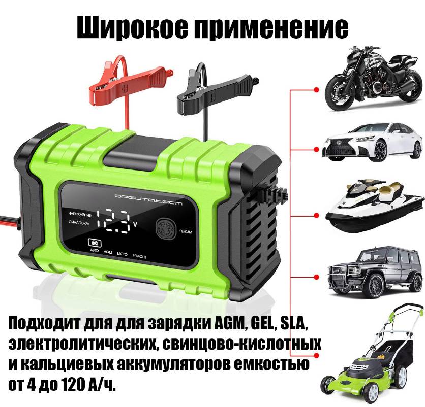 Зарядное устройство подходит для большинства типов аккумуляторов, включая: AGM / GEL / SLA / WET / CICLO / EFB / Кальциевые. Они также могут помочь восстановить высушенные и сульфаты батареи (ремонтный режим)