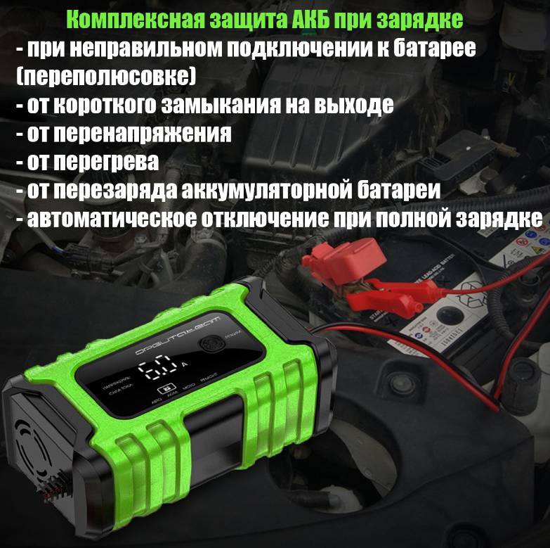 Автоматическая зарядка защищает аккумулятор от перезарядки. Таким образом, вы можете оставить зарядное устройство, подключенное к батарее бессрочно.