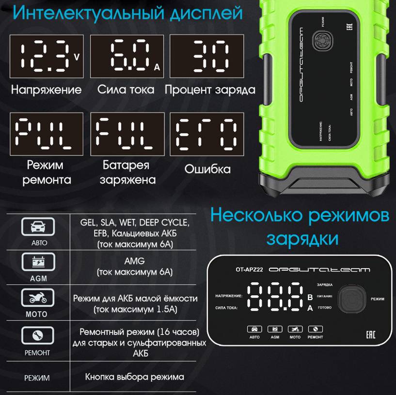 Автоматическое зарядное устройство(12В,6A) Орбита OT-APZ22