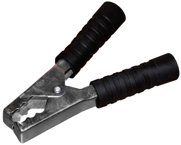 Состоит он из двух фигурных деталей с «крокодильими» зубцами, скрепленных серединами специальным штифтом и способных поворачиваться на некоторый угол вокруг оси соединения. К одной из деталей монтируется контактный провод. Сжатие «челюстей» обеспечивается пружиной, вставленной с другой стороны штифта. Контактная часть изделия изготавливается из стали с никелированным покрытием. В целях безопасной эксплуатации зажима, ручки имеют изоляцию, изготовленную из ПВХ, что предохранит от поражения специалиста электрическим током. Чаще всего зажимы применяются парами черного и красного цвета (50/50).