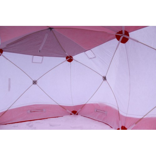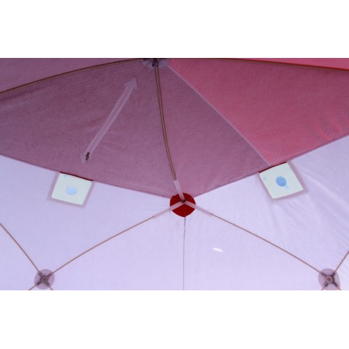Материал тента внешний слой Оксфорд 210d, внутренний слой - термостежка (таффета 190Т + синтепон). Верх палатки - вставка из дышащей ткани Грета